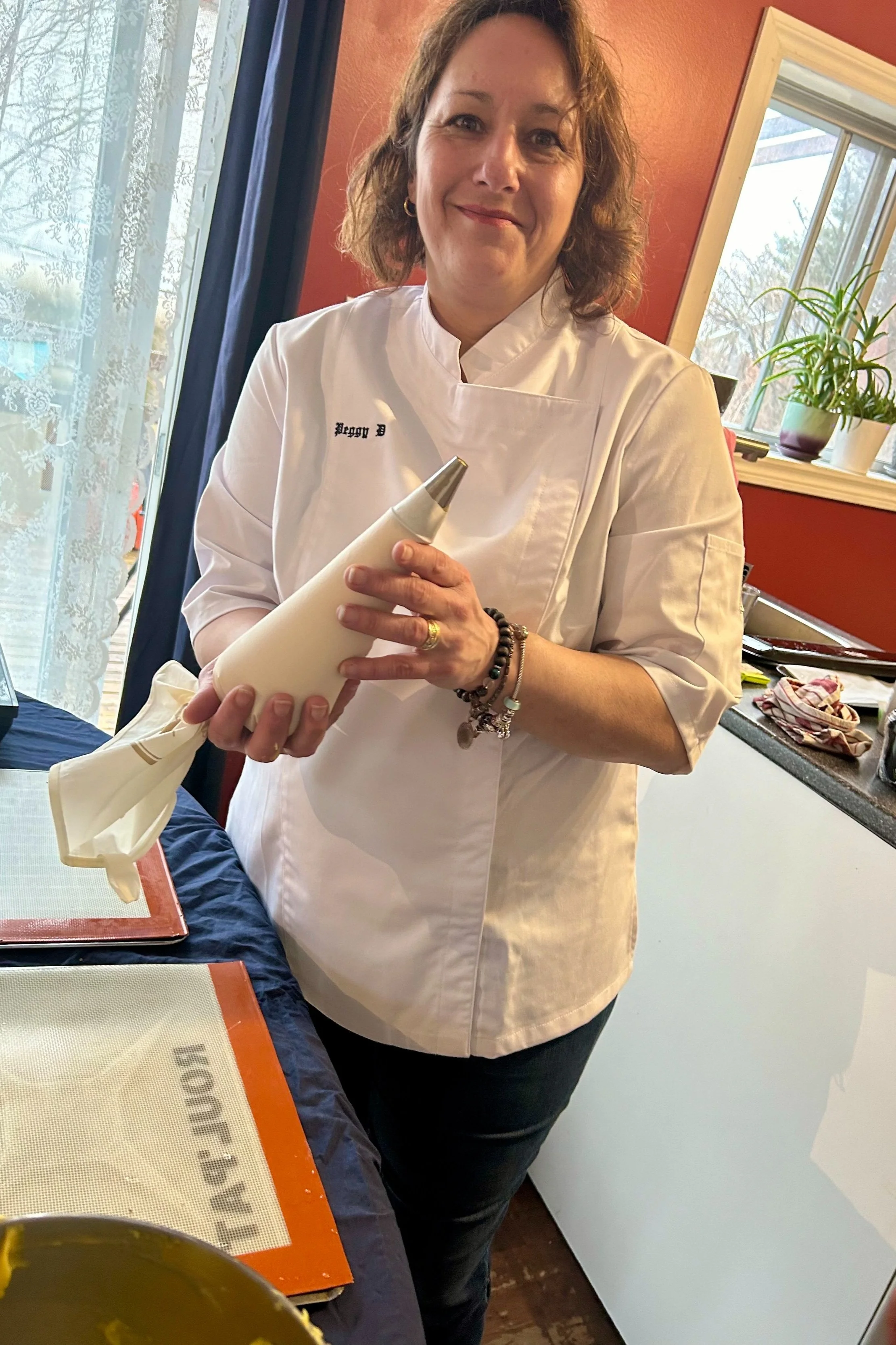 Autodidacte dans les arts et la gastronomie, Peggy a su s’entourer de chefs inspirants qui lui ont transmis leur savoir-faire. Curieuse et créative, elle puise son inspiration dans la nature, les produits locaux et les saisons. Ses ateliers, à mi-chemin entre art et pâtisserie, incarnent ses passions qu’elle partage également avec son époux, Chef pâtissier.